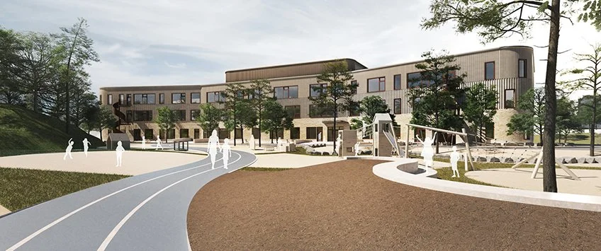 Nya Njupkärrs skola i Tyresös Bollmora, kombinerar hållbarhet och historia genom att återbruka material från den äldre skolan. Skolan, som byggs prefabricerat, kommer med minskat klimatavtryck och moderna läromiljöer ha kapacitet för 550 elever. I projektet ingår också en idrottshall. För att minska miljöpåverkan återanvänds delar från den gamla skolan.